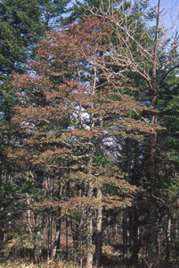 落葉広葉樹,高さ20m,太さ60cmほどになる。山地に生える。春の芽出しの色は赤褐色をしている。