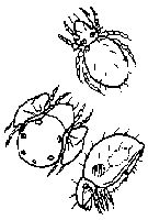 ![]() トビムシ 体長 1~3㎜が多い  | ![]() ササラダニ 体長 0.2~1.5㎜が多い  |