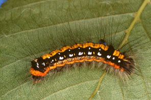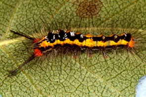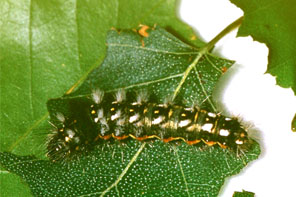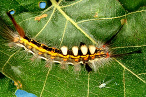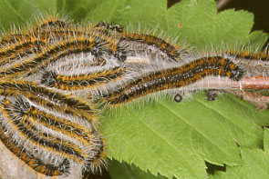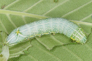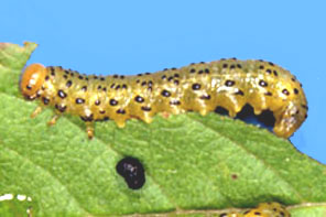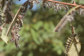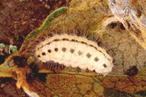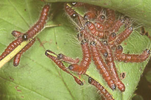 | イモムシ,その1 イボ状の脚は5対.集団性,糸を張り巡らす.触角は不明瞭. |