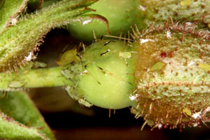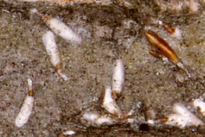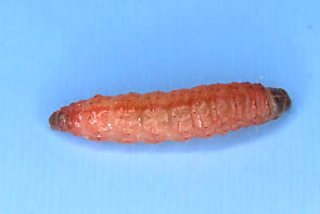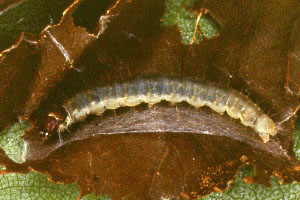 | イラムシ イモムシ状.頭や脚は不明瞭.葉に張り付く. |