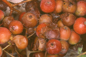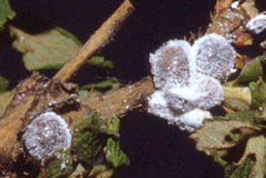 | 白い粉や綿に覆われる. |
