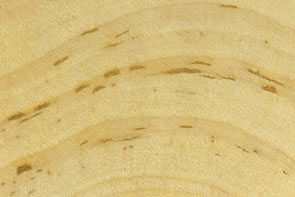 ミノドヒラタモグリガ カンバ類のの材内の随近くに茶色の変色がある.横断面では丸く,直径最大約2mm.縦断面では縦筋となって現れる.