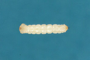 | イモムシ(ハムシの幼虫) 腹脚はない.尾端が吸盤状. |