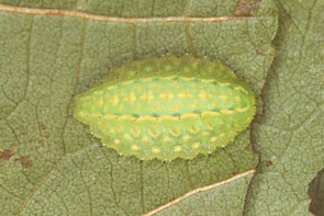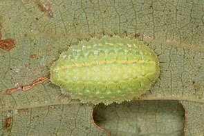 クロシタアオイラガ 8~9月に出現.最大長約18mm.