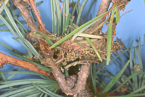 カラマツ属樹木の食葉性害虫,巣を作る