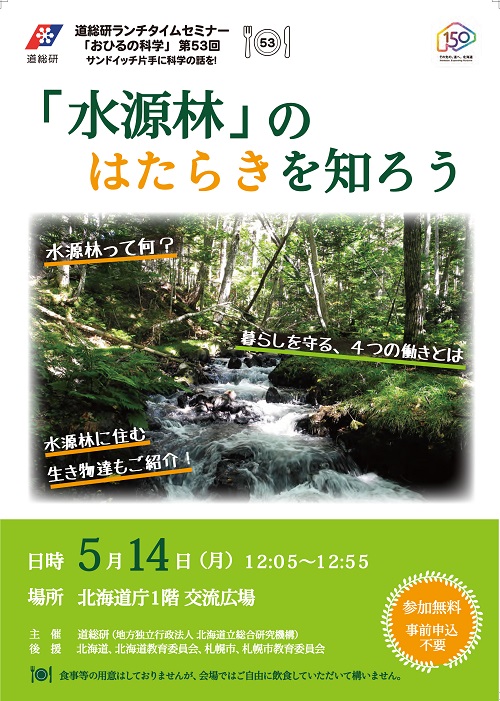 水辺に樹木があることは、水温の安定、生息場形成,餌となる有機物供給など,水生生物に大きく関わります。渓流魚やヨコエビ,水生昆虫は,水源林に育まれているといえます。