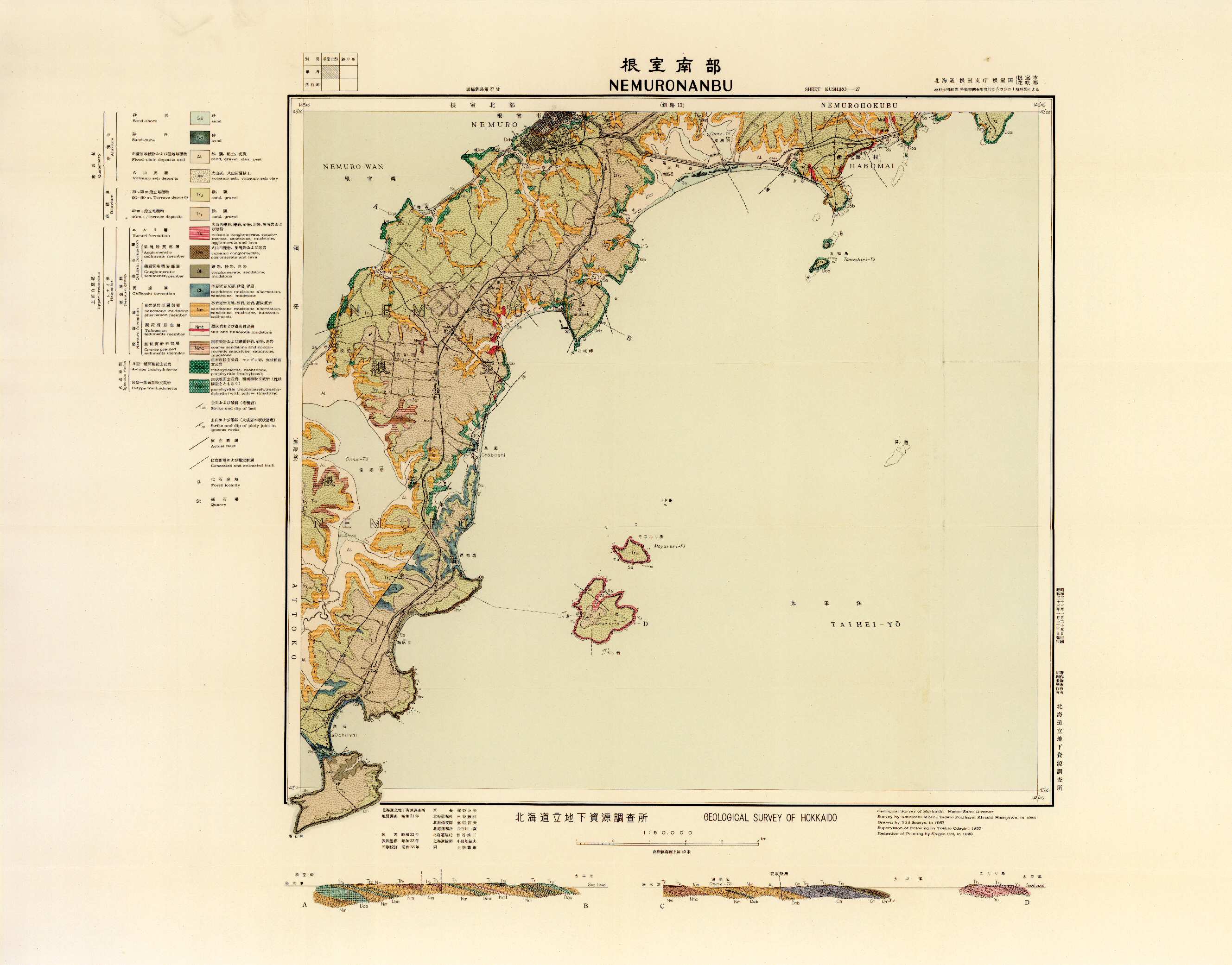 |   1.4MB | 鹿部 | 札幌-77 | 5万分の1地質図幅「鹿部(札幌-77)」および同説明書 | 1967 |