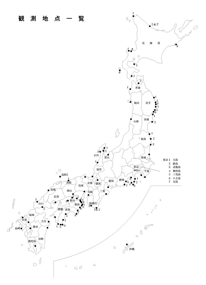 | 書 名 | 頁 | 刊行年 | 観測点 (JPEG)  | 観測機関一覧 (CSV)  | 旬平均沿岸水温 (CSV)  |