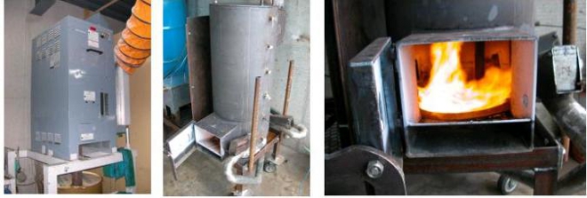 ■支援の背景全国で1年間に廃車となる車両は500万台ほどあり、そこから産業廃棄物として廃棄される不凍液は膨大な量で、 産廃業者等により主に焼却処分されています。不凍液の主成分としては、エチレングリコールを使用することが多く、 発熱量が4,500kcal/kgほどの可燃物です。 この廃不凍液でも濃度を90%以上に濃縮すると、ポット式の燃焼機で燃焼可能となります。 道内の企業から、廃不凍液を燃料とする暖房機を開発したいとの要望があり、技術支援を行いました。