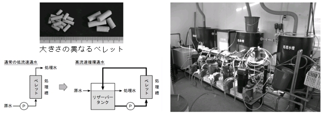 2.処理槽に充填するペレットの大きさや通水条件等の検討
