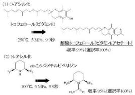 1.従来の有機溶媒中での合成法と比較し、高選択・高速で、かつ無触媒でアシル化反応を促進させる