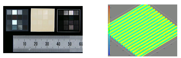 Siモールド(左)と作製したCOC樹脂モールド(右) COCモールドの5μm 幅線のプロファイル