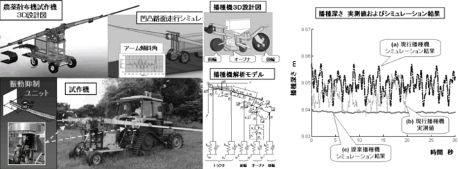 開発した農薬散布機姿勢保持機構 播種機の播種深さシミュレーション