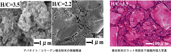 - 複合粉末のラット背部皮下組織内への埋入では、優れた組織適合性と生体吸収性が立証されました。