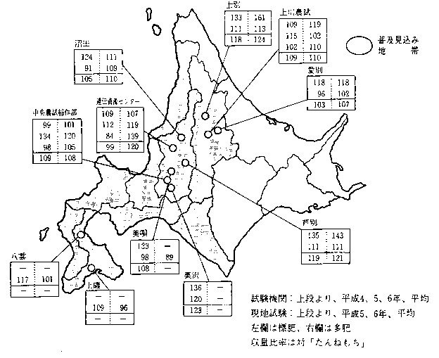ている。これらのうち、道東、道北を中心とする早生種地帯では、平成元年に奨励品種となった早生・良質・