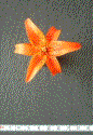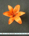 ①花容:花弁色は鮮橙色で花弁基部に微小な暗灰赤色の斑点を有する。花形はすかしゆり型で花径は85〜96mmの小輪咲きである。「チョウセンヒメユリ」よりやや大きいが、「モナ」より明らかに小さい。「チョウセンヒメユリ」のような不快臭はほとんどない。
