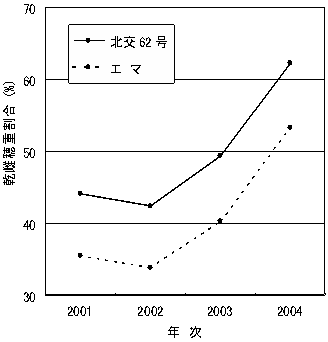 図2 「北交62号」の乾雌穂重割合(根釧農試)