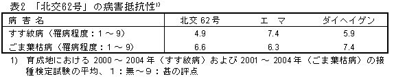 (3) すす紋病抵抗性は“中” で「エマ」および「ダイヘイゲン」より強い(表1、2)。
