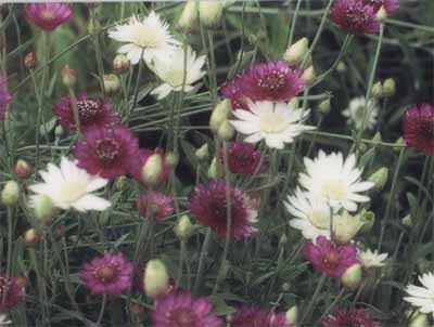 品目名 キセランセマム 品種名 ルミナミックス 学 名 Xeranthemum annum 科 名 キク科 分 類 一年草 草 丈 60㎝ 草 姿 立ち性 花 色 白・ピンク 開花期間 1~2ヶ月 特 性 南ヨーロッパ原産。きわめて強健で軽い砂質壌土を好む。切り花として利用されている。 4月 5月 6月 7月 8月 9月 10月 × △ ・ ・ ・ ・ ・ ・ ◎ ×:播種期、△:発芽期、■:開花期間、◎:最盛期