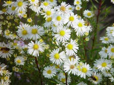 Aster属の交雑品種で「シロクジャク」、「クジャクソウ」とも呼ばれる。排水良好な半日陰を好む。切り花として盛んに生産されている。 |