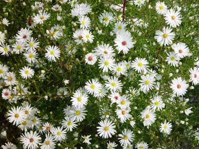 Aster属の交雑品種で「シロクジャク」、「クジャクソウ」とも呼ばれる。排水良好な半日陰を好む。切り花として盛んに生産されている。 |