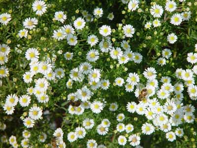 Aster属の交雑品種で「シロクジャク」、「クジャクソウ」とも呼ばれる。排水良好な半日陰を好む。切り花として盛んに生産されている。 |